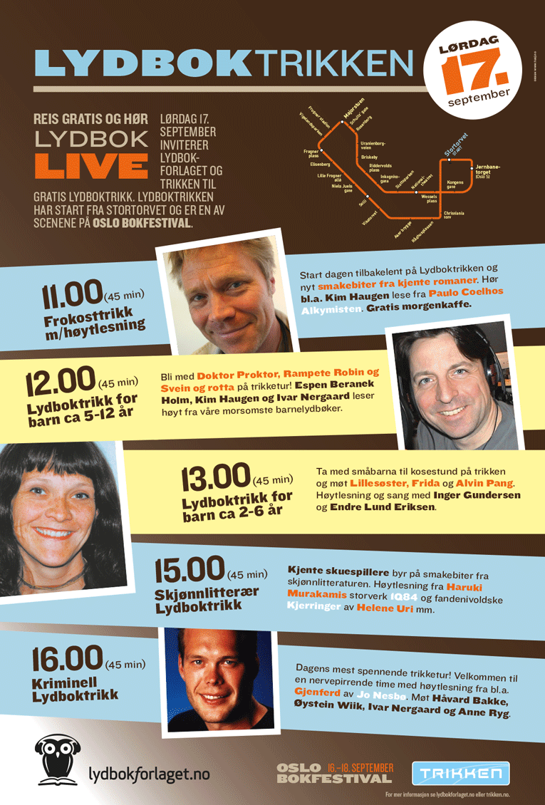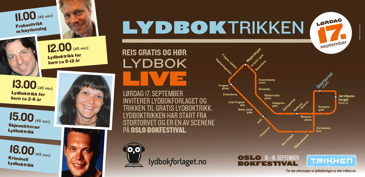Lydboktrikken var en del av Oslo Bokfestival i september 2011. Kunden stod selv for idé og regi, Byrå Tusj bidro med kampanjemateriell. Her kundens egen uttalelse om det litt uvanlige stuntet: