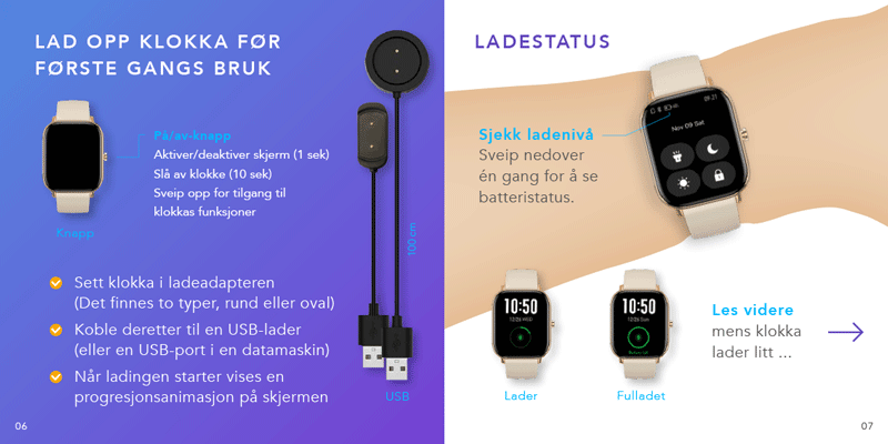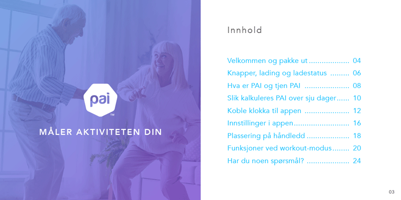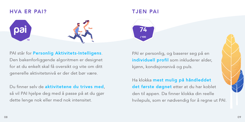 Som vedlegg til klokka forklares alt fra lading, funksjoner, hva PAI er og innstillinger i appen.