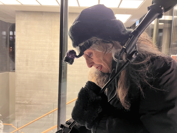 Kunstner Bella da Silva Buxbom presenterer og demonstrerer installasjonen